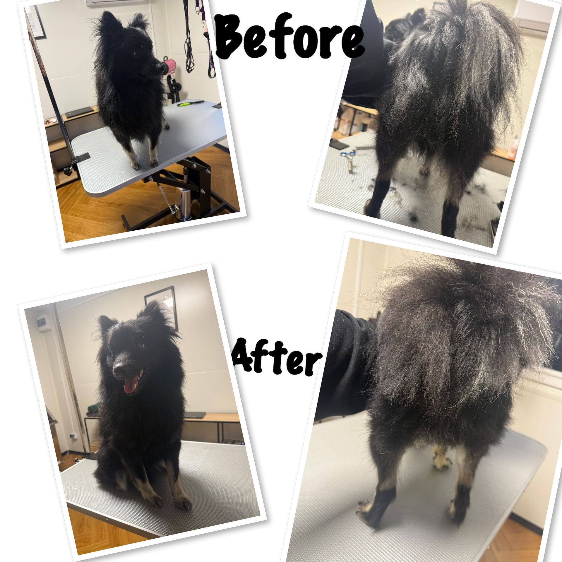 π Hoi, ik ben Melanie, ik woon samen met mijn partner en ben trotse moeder van 4 kinderen. We hebben samen 7 honden. Onze honden nemen een grote plek in ons leven. We hebben 2 prachtige husky’s, 3 energieke pomsky’s en 2 lieve pomeriaantjes. Al deze rassen hebben een volle, verzorgingsintensieve vacht die veel aandacht nodig heeft. Het borstelen, onderhouden en trimmen van hun haren doe ik met liefde, en dat heeft mijn passie voor het vak alleen maar groter gemaakt.